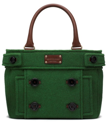 ไม่ว่าจะเป็นกระเป๋าที่ดัดแปลงจาก Peacost - เสื้อกันหนาวผ้าวูลกระดุมสองแถวสีสันสดใส หรือกระเป๋า tote ใบโต หลากสีตั้งแต่สีเชอร์รี่ เขียว งาช้าง ขาว และดำ ทำจากหนังเทียมเนื้อเงาวาว ประดับโลโก้ kate spade NEW YORK เห็นเด่นแต่ไกล